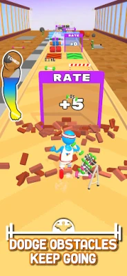 Strengthen your character by enhancing stats like Evolve, Weight, Rate, and Income, and pass through gates to level up faster.