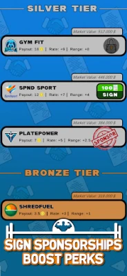 Sign Sponsorship Contracts: Earn payouts after every level and gain rate and range perks from sponsors.