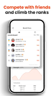 - Competitive Leaderboards - Challenge friends on leaderboards for strength and activity.