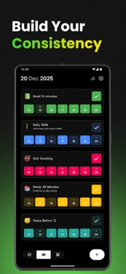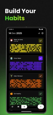 Customize your habit dashboard with different views. Switch between day, week, or heat view to track and update habits in the way that feels easiest for you.