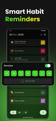 Set reminders for your habits and get notifications at your chosen time. Gentle reminders help you stay consistent without feeling pressured.