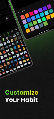 Create new habits in just two taps. Add a name, short description, color, and emoji to personalize each habit and find it easily on your list