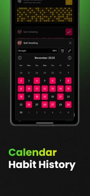 Review and manage your past habit records with a clear calendar view. Tap any date to update a completion quickly and easily.