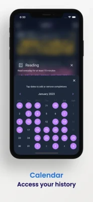 The calendar provides a fast and easy way to manage past completions. Simply tap a day to remove or add a completion.