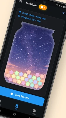 Looking for a habit tracker that actually feels rewarding? HabitJar turns your routines into visible progress. Each time you complete a habit or task, a marble drops into your jar.