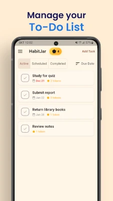 Manage daily tasks alongside your habits. Add due dates and reminders, then check tasks off to earn marbles.