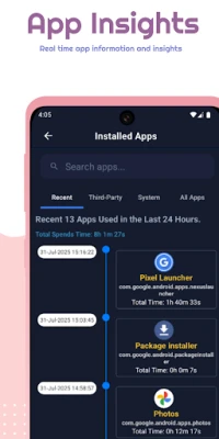 ⚡ Apps Viewer: Browse through all installed applications. Access detailed information about each app's usage, storage, and performance.