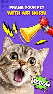 - Loud air horn prank sounds and attention-grabbing effects