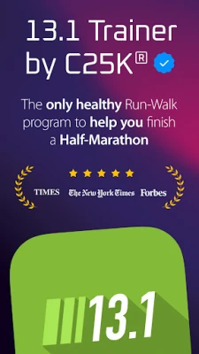 From the same makers of the #1 C25K Trainer app, Half Marathon Trainer follows the same successful recipe to create an easy simple 13.1 (21k) program, best suited for first-time half marathoners and those who are new to running. The program uses a blend of running and power walking in training and racing. You’ll soon be able to run-walk the entire half marathon.