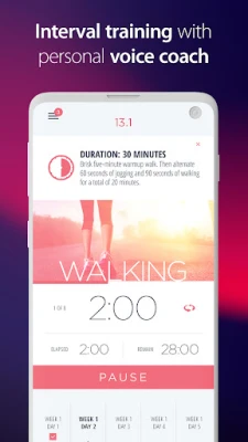 ★ This app will train you to complete a full 13.1 (26K) distance using a RUN/WALK strategy ★