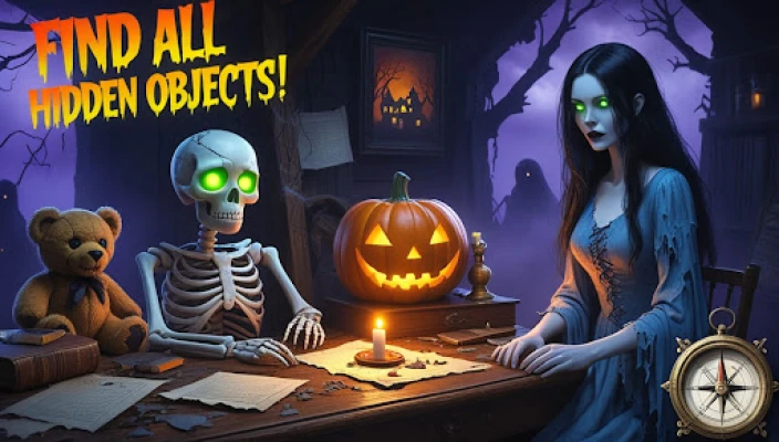 Halloween Hidden Objects Quest offers hundreds of challenging scenes, beautiful artwork, and a fun Halloween atmosphere. Explore the Halloween story, meet friendly ghost characters, and discover hidden secrets in every level. Find all the objects before time runs out to earn bonus rewards!