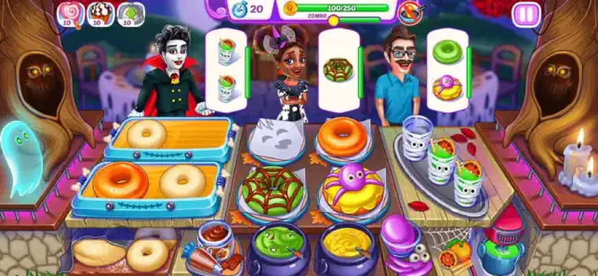 ENTER THE SPOOKY WORLD OF HALLOWEEN MADNESS! COOK CREEPY CUISINES, SERVE GHOULISH CUSTOMERS, AND MANAGE YOUR OWN HAUNTED RESTAURANT IN THIS THRILLING COOKING GAME!