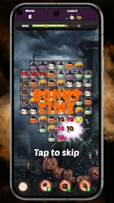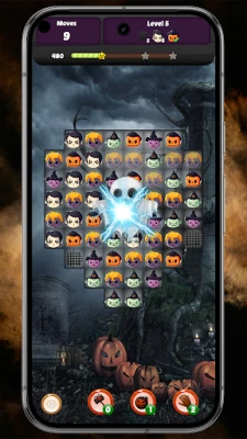 The game has many levels. Each one is different. Some are simple. Some are harder. You will see pumpkins glowing in the dark, ghosts and witches. When you connect more than three of the same items, you unlock powerful boosters and magic effects. These special moves can clear a big part of the board and help you win difficult levels.