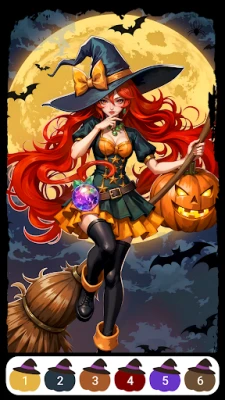This paint by number app is designed for players who want to enjoy Halloween in a creative and relaxing way. Instead of only joining a party or wearing a costume, you can sit back, tap on your device, and watch each paint by number artwork come alive. The simple paint by number mechanics let you complete detailed designs step by step. Whether it's a vampire cosplay, horror makeup design, or a bag full of candy, you'll find endless themes to paint and explore.