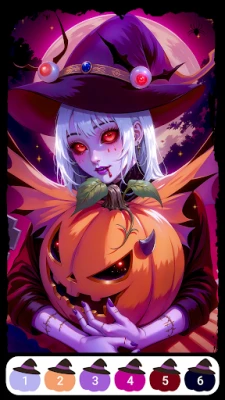 Download Halloween Paint by Numbers and bring the season's energy to your device. Every tap unlocks a new detail, every color adds a piece of the puzzle, and by the end, you'll have a finished paint by number masterpiece that reflects the spirit of Halloween. Whether you prefer pumpkins, horror makeup, haunted houses, or sweet candy, there is always something new to discover in this paint by number adventure.