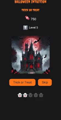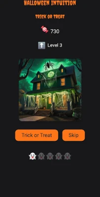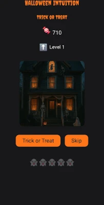 In each level, you are shown a different haunted house. Based on nothing more than your intuition, choose "Enter" or "Skip." Choose correctly and earn pumpkins or sweets, the in-game reward. But beware—five wrong guesses and the game resets with a new random sequence of houses and answers.