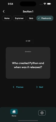 * **Flashcards**: Flip-style Q\&A cards for memory retention.