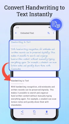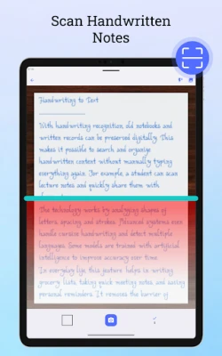 Handwriting to Text Converter makes it easy to turn handwritten notes into digital text using AI-powered OCR (Optical Character Recognition). Scan handwritten notes with your camera or gallery images and extract text instantly.