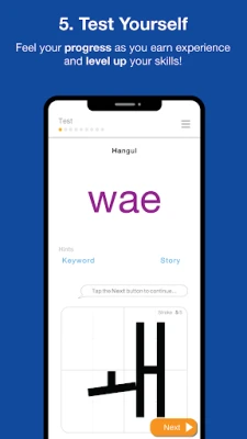 We differ from the similar Korean learning apps with the additional learning tools you can’t find elsewhere. There are guides and trace for each stroke on your screen, you can level up as you learn and test yourself to make sure you are on point with your learning.