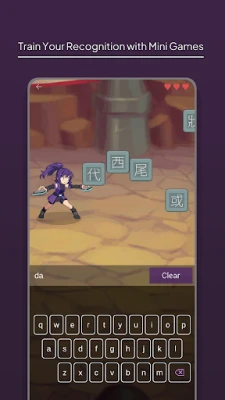 Train your character recognition with mini games. There are character similarity quiz, and fast-typing mini-games for both pinyin and zhuyin!