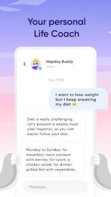 Hapday is your AI Life Coach — available 24/7 to help you change your life in 30 days.