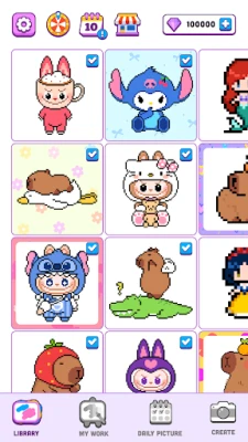 Welcome to Happy Pixel Cute Coloring β the ultimate pixel number coloring game filled with cute art and adorable characters! From trendy creatures to lovely animals and magical princesses, youβll find tons of pixel art images that bring joy to every tap and color.