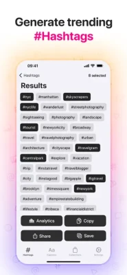 - Input your post's caption and let AI generate matching hashtags