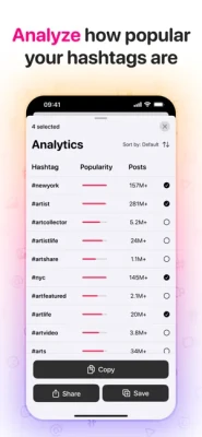 - Copy and share hashtags directly to your social media