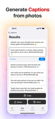 - Copy and share captions directly to your social media