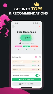 The special assistant Wizard will help gather a versatile set to achieve maximum audience coverage and a large number of instalikes. The collected sets of hashtags for instagram are conveniently stored in Collections for quick reuse. Get insta followers has never been so easy!