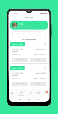 The healthcare first is a shift management App that helps staff of the healthcare industry like the health care workers, nurses or support staff in managing their shifts effectively. They can do their shift bookings, provide shift timestamp and attach timesheets/signatures along with the shift as evidence for the work done.