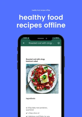 healthy food recipe app offers lots of healthy recipes. This includes breakfast recipes, lunch recipes, dinner recipes, chicken recipes, beef recipes, fish recipes, salad recipes, soup recipes and dessert recipes.