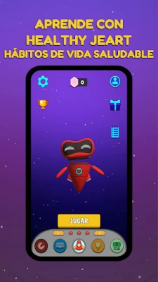 “Jeart”, es un corazón extraterrestre que debe aprender a cuidarse para transformarse en un corazón hermoso. Este juego educativo bonifica la adquisición de ítems saludables y penaliza los no saludables. Al terminar la partida, los chicos y chicas podrán utilizar los puntos conseguidos para hacer que el aspecto del personaje evolucione hasta adquirir una imagen visualmente cada vez más potente y resistente.