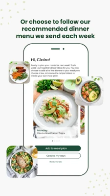 Follow our recommended dinner plans or build your own plan with breakfasts, lunches, dinners, and snacks, all from a growing library of hundreds of recipes