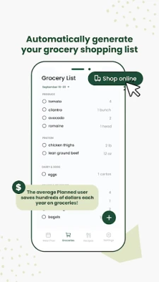 Automatically generate grocery lists based on your meal plan. Shop in-store or use Instacart delivery integration.