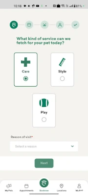 Easy booking: Quickly find nearby locations, book services, review upcoming and past appointment details, and more. We’re more than veterinary care: book grooming and dog daycare appointments all under one roof.