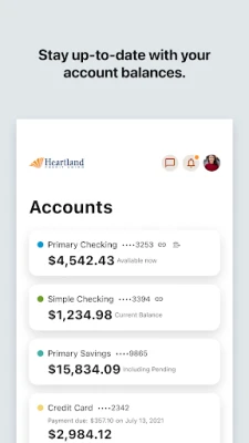 - Check Balances - View Transaction History - Transfer Funds - InstaCheck Mobile Check Deposit - Pay Loans/Bills - Locate ATMs/Branches *Mobile Banking only available to Heartland Credit Union Online Banking participants. Visit http://www.hcu.coop for further details.