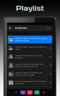 All melodies are stored directly on your device, so the app works without internet access. Thanks to optimized energy consumption, music can play for extended periods without draining your battery or overloading your device.