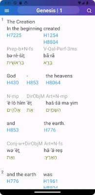 This Study Bible includes original Hebrew and Greek with English interlinear and morphological dictionary. The Bible contains corresponding Strong's number attached to each verse and words. The word can be opened on a single tap with its meaning. The Bible is easy to navigate to any chapter or verse from Old and New Testament. This application is essential for those who want to study Bible deeper into its original meaning.