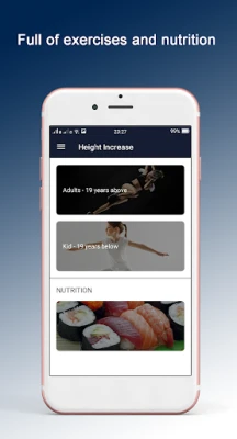 - Include 12 weeks of exercise to see the difference in height. - Height Increase Exercise the list of exercises on a daily basis, ensuring optimal development of your height. - Instructing you to practice with easy-to-understand animations. End of Height Increase Exercise also motivate you to encourage those who do not have persistence. Food: