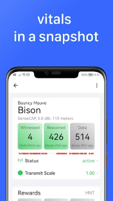 Check your coverage radius and see how far you reach to witness PoC challenges. You can also analyze the rating of the hotspots you witnessed, in terms of transmission scale.