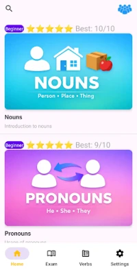 Practice English grammar with topic-wise quizzes and level-based exams. Test your progress and build confidence after every lesson.