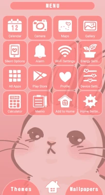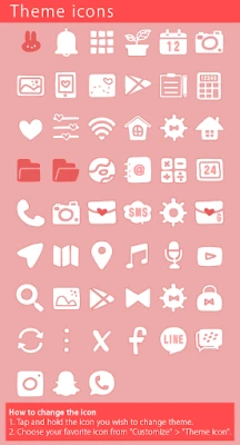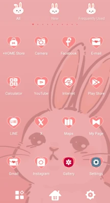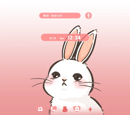 This is a theme that can be customized with a wallpaper of a bunny and cute heart icons and widgets.