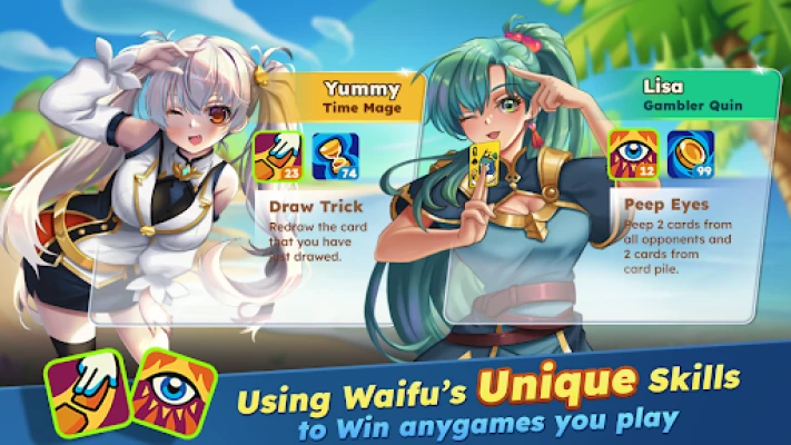 Become a true tactician as you engage in strategic card battles. Plan your moves, combine Hime' skills, and anticipate your opponents' actions to emerge victorious. The key to success lies in your hands and your Waifus' powers.