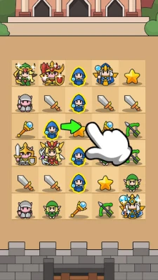 You need to upgrade your heroes through synthesis. Slide to place your heroes. Protect your castle. Eliminate all the monsters.