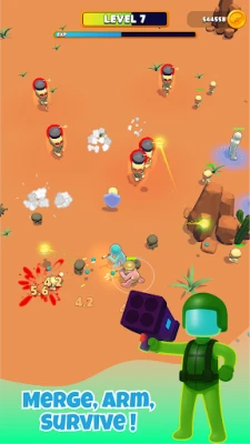 Collect and fuse heroes to create more powerful warriors. High-level characters are equipped with powerful weapons and equipment, making them the backbone of your squad. After each upgrade, you will be able to choose 1 of 3 random buffs — increasing damage, reducing cooldown, or supporting defense — to adapt your tactics to each attack. How long will you last in this dusty hell?
