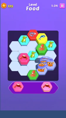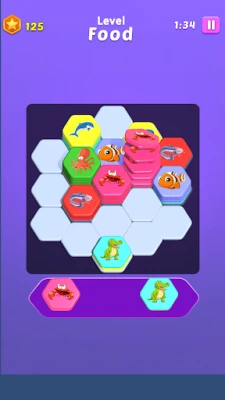 In every level, you will see hexagon tiles with different colors or animals. Your goal is to sort the tiles by matching them correctly — just drag and drop. Once the tiles are in the right place, the level is complete. ✅
