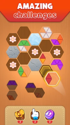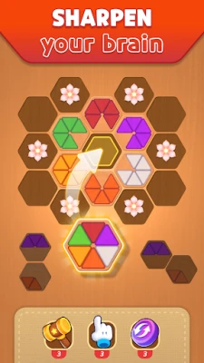 👉 Challenge your mind: Strategically sort colorful triangle tiles to complete stunning hexagons. Each perfect merge is a mini-victory, pushing you to conquer ever-increasing challenges.