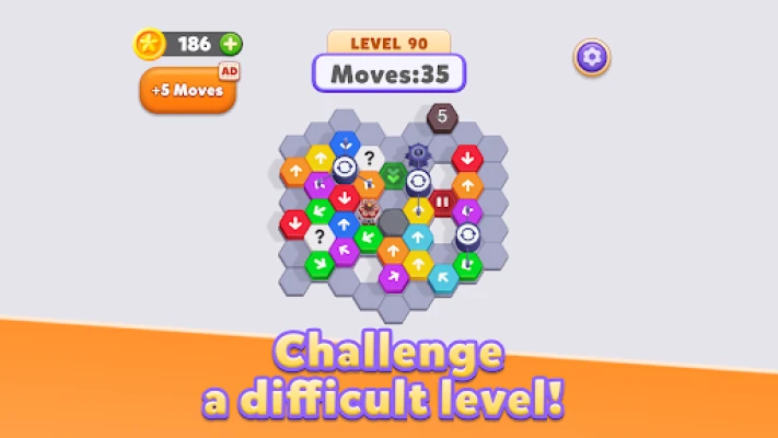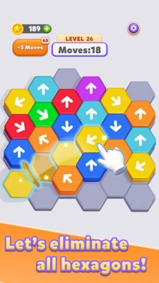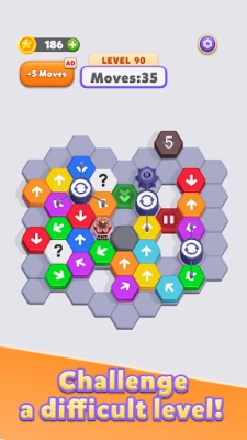 - Easy to Play: Tap hexagonal tiles marked with arrows to move them in the indicated direction and out of the stack. The rules are intuitive and easy to pick up.