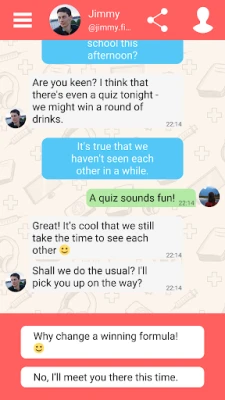 Send messages to your friends and choose how you interact with them! Each message is a choice and people will react according to what you say. What will you choose: a lie or the truth? Jealousy or Passivity?